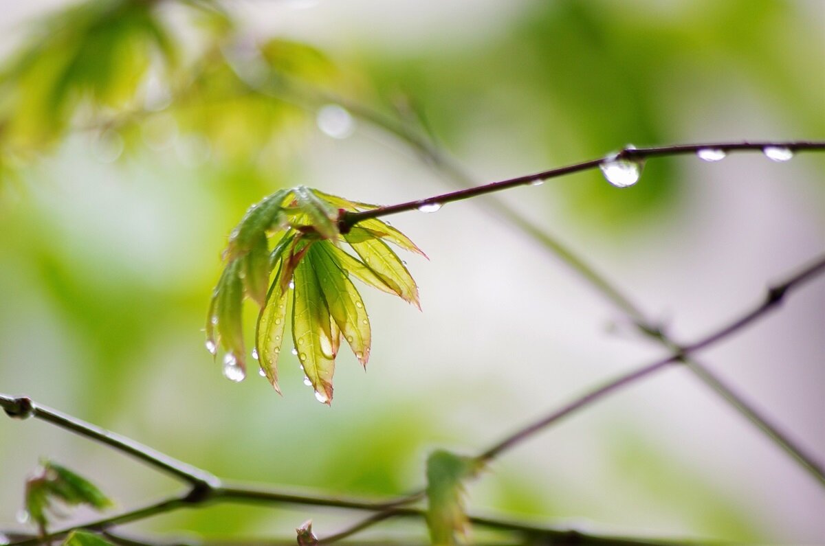 同時に、赤ちゃんの手のようなイロハモミジの若葉も出始めました。